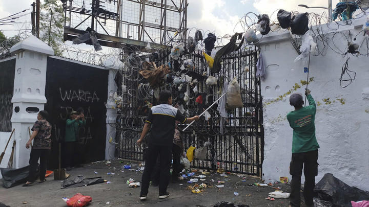 Pantauan pada pukul 13.00 WIB, massa pendemo sudah membubarkan diri. Sementara itu sampah sedang dibersihkan oleh petugas.
