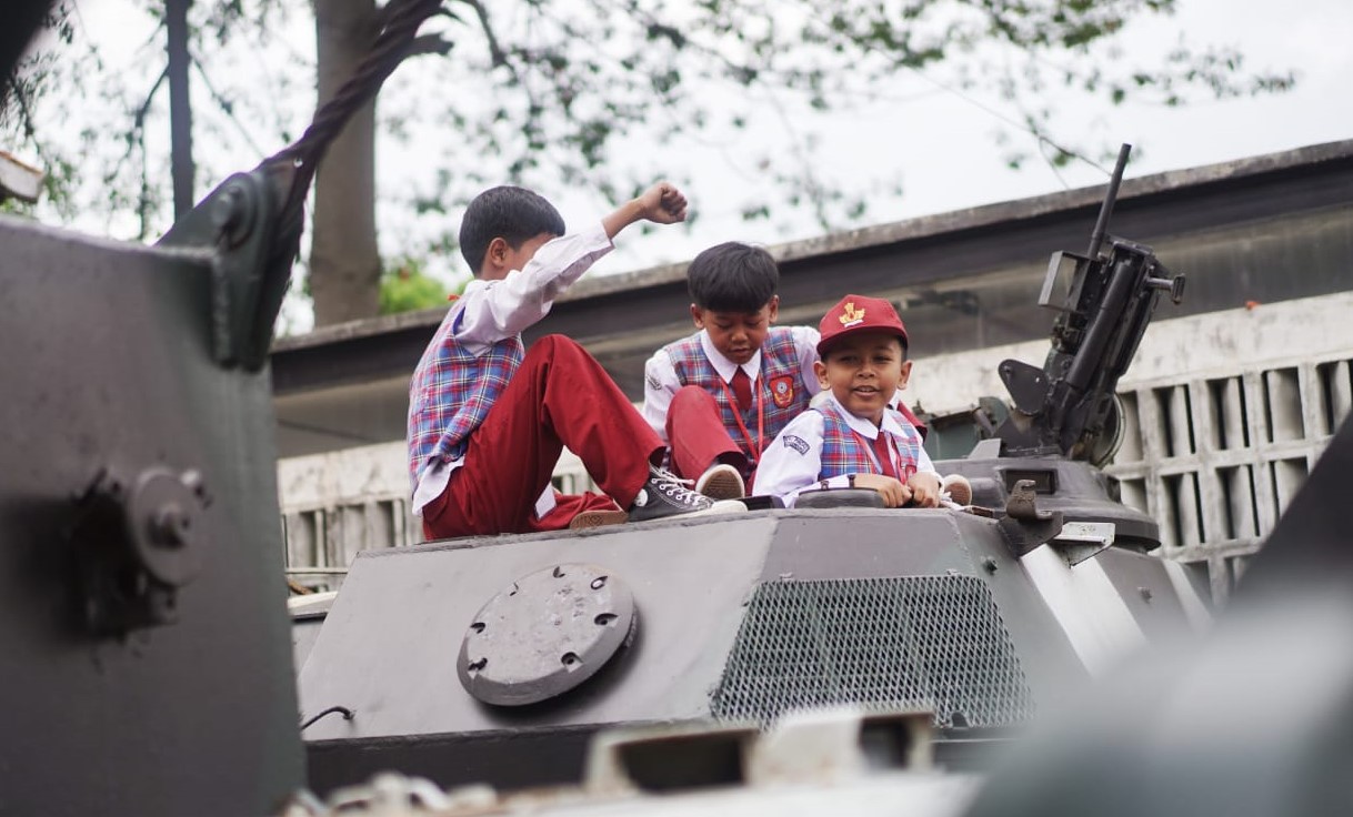 Puluhan pelajar SD dan SMP Kota Bandung larut dalam kegiatan edukatif yang dikemas interaktif, mulai dari pengenalan sejarah kavaleri, kuis kebangsaan, hingga pengalaman langsung menyaksikan koleksi panser dan kuda militer.