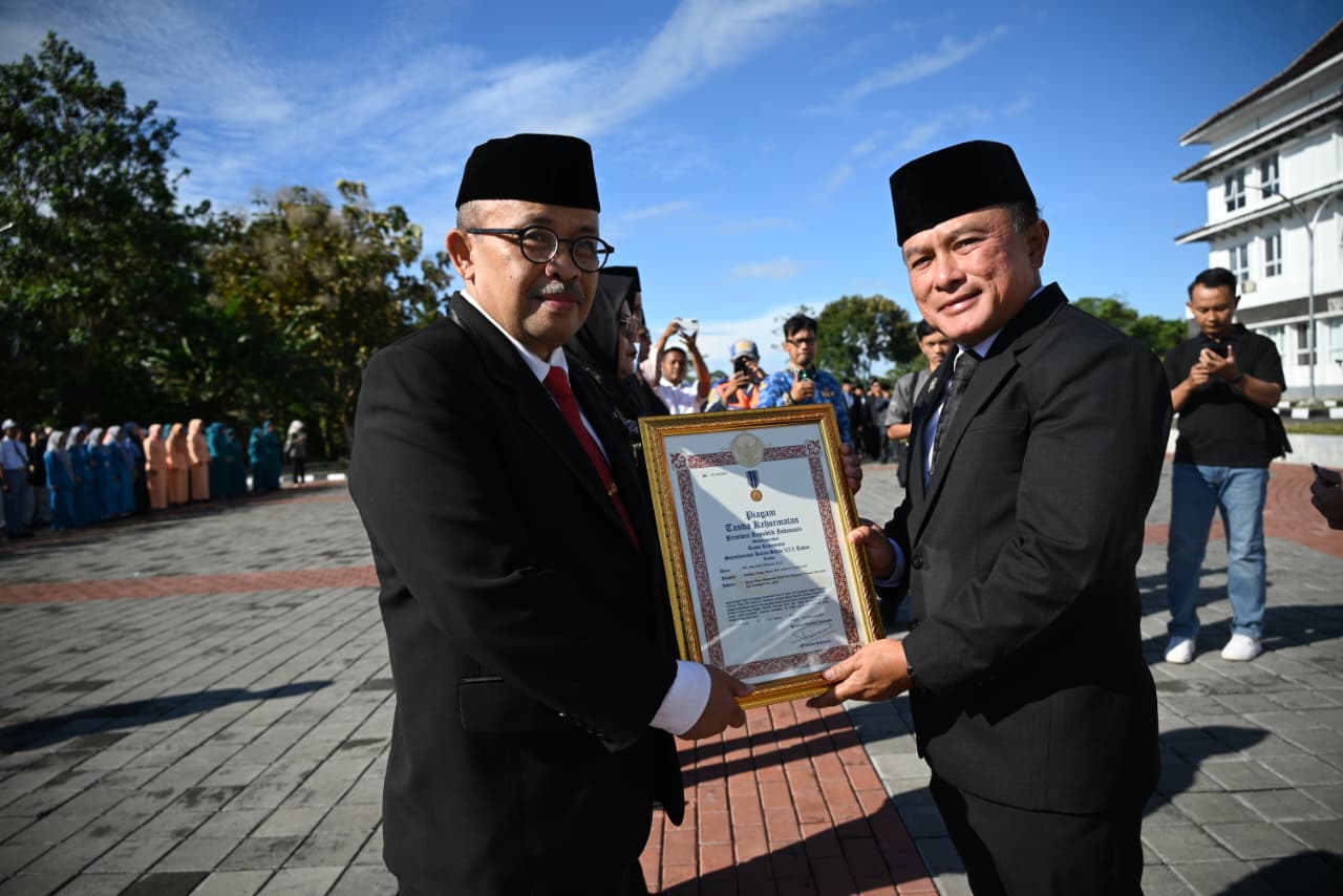 Pada kesempatan tersebut, Bupati Dian menyerahkan secara simbolis Tanda Jasa Satyalancana Karya Satya dari Presiden Republik Indonseia.