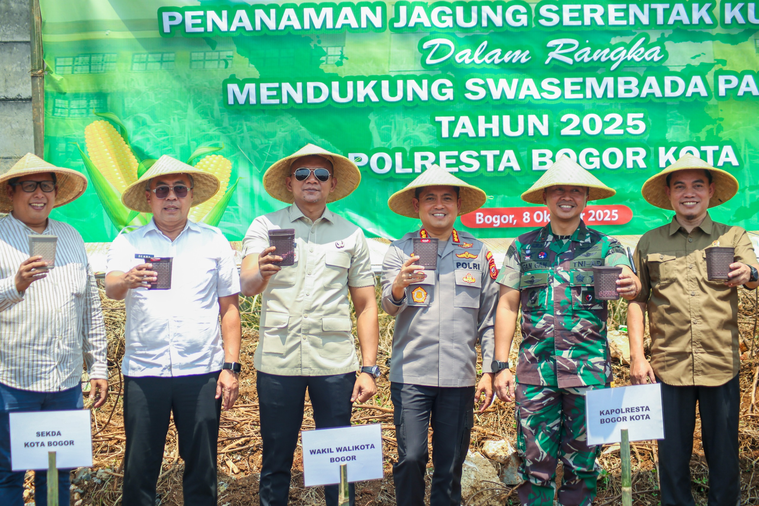 KabarSunda.com- Wakil Wali Kota Bogor, Jenal Mutaqin menghadiri kegiatan penanaman bibit jagung kuartal IV bersama jajaran Polresta Bogor Kota di Kelurahan Sukadamai, Kecamatan Tanah Sareal, Rabu (8/10/2025).