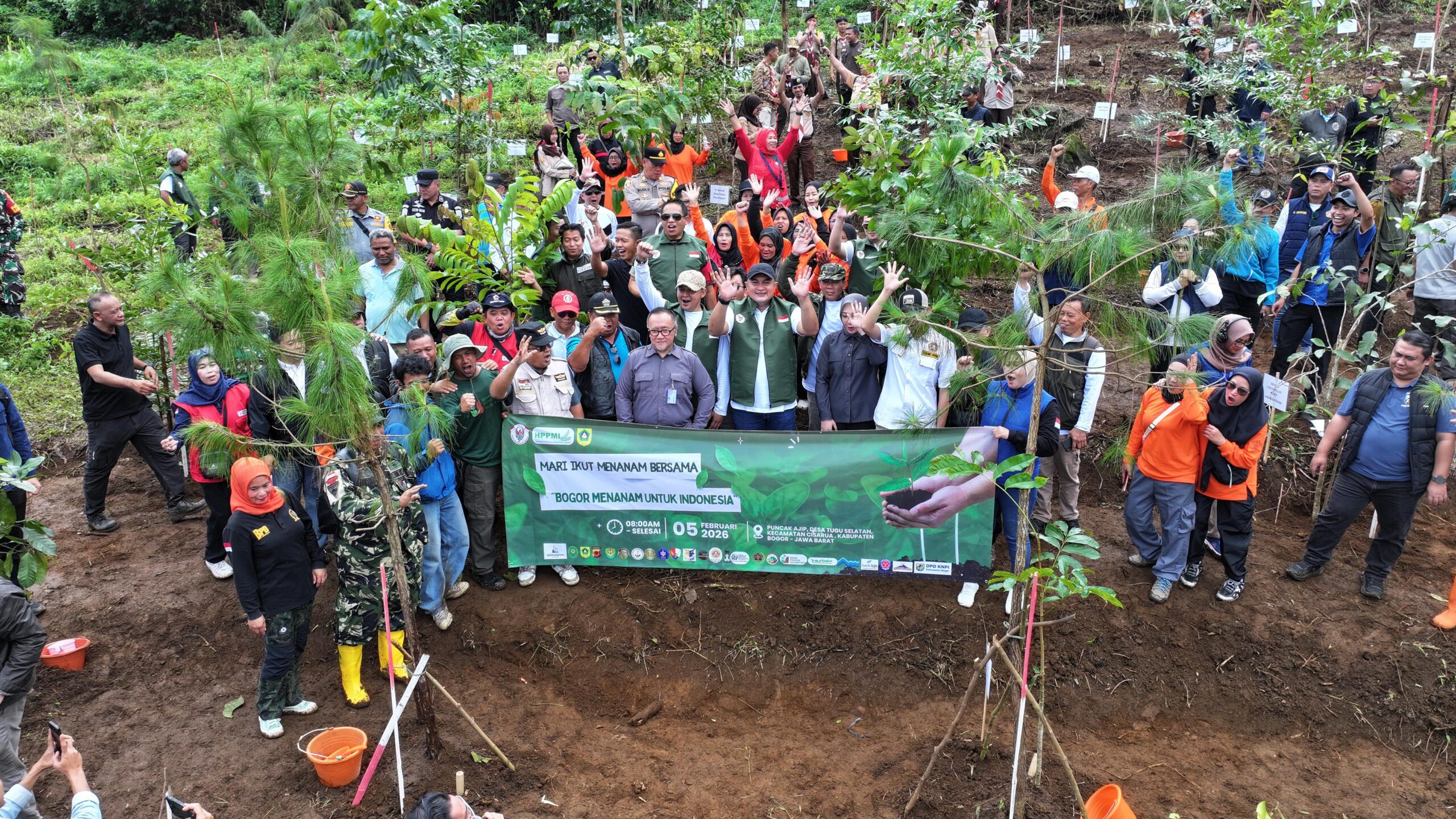 Kegiatan ini merupakan bagian dari program penanaman pohon serentak dan pembangunan hutan kota di 40 kecamatan se-Kabupaten Bogor.