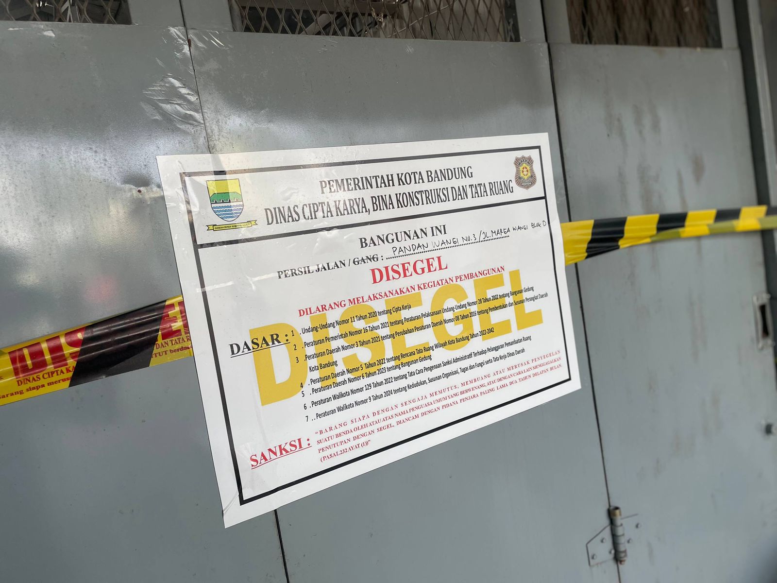 Kepala Bidang Trantibum Satpol PP Kota Bandung, Yayan Ruyandi menjelaskan, bangunan tersebut diproses karena tidak memiliki PBG, sehingga ditindaklanjuti oleh Dinas Ciptabintar hingga terbit Surat Keputusan Wali Kota.