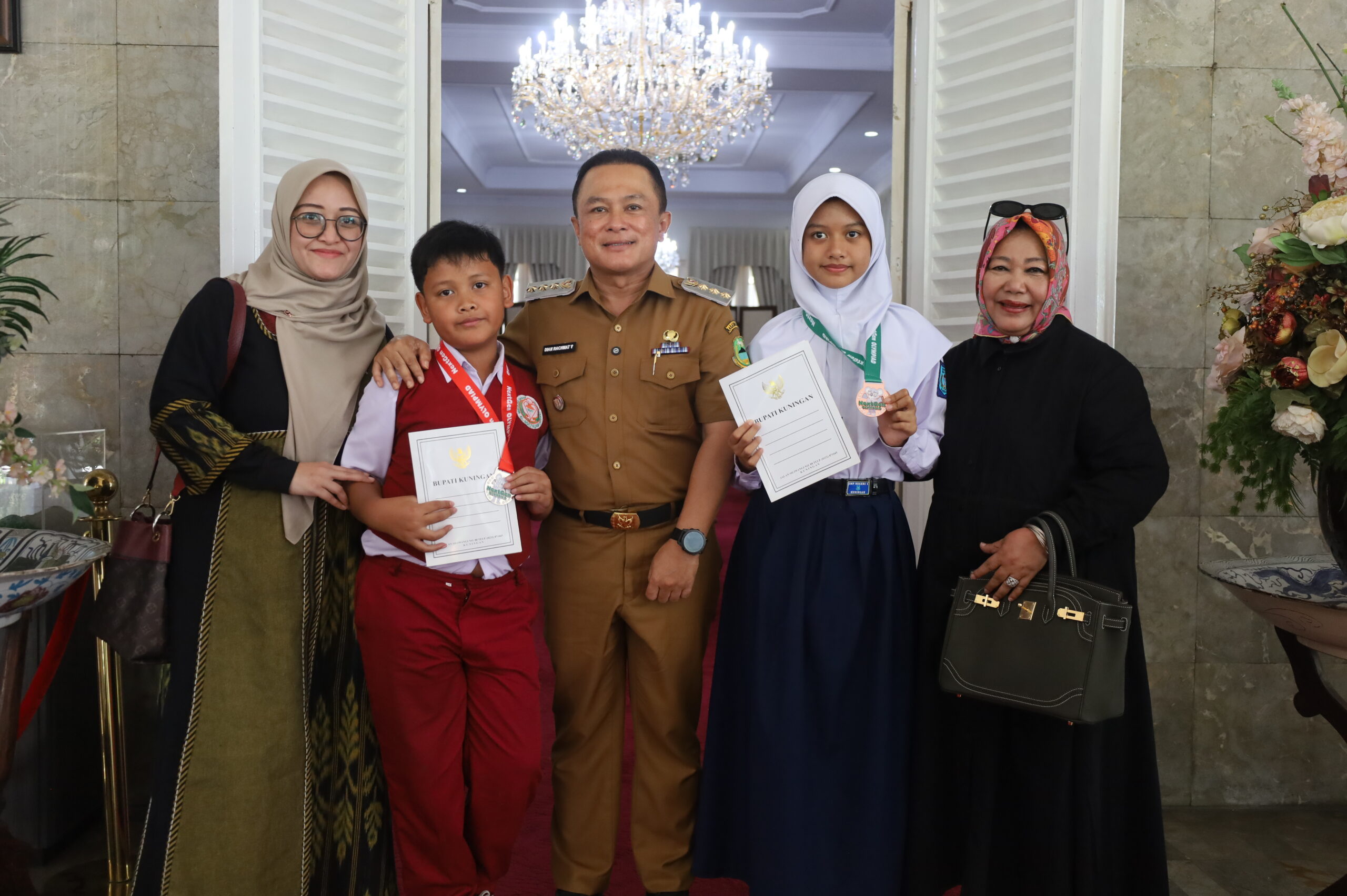 KabarSunda.com- Bupati Kuningan, Dr. H. Dian Rachmat Yanuar, M.Si, memberikan apresiasi kepada dua siswa berprestasi peraih medali Olimpiade Matematika tingkat internasional, di Pendopo Bupati, Senin (20/04/2026).