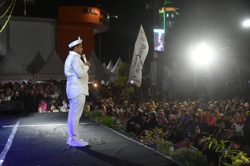 KabarSunda.com- Warga Sumedang memadati kawasan Alun-Alun Sumedang untuk menyaksikan Pergelaran Ekosistem Budaya Kasumedangan yang menghadirkan Gubernur Jabar Dedi Mulyadi dan komedian Ohang serta Ade Batak, Jumat malam (24/04/2026).